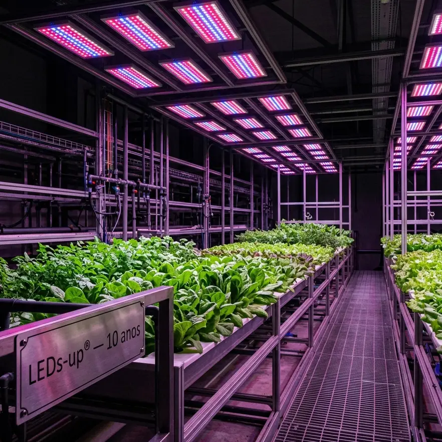 Nos próximos anos, o foco permanece nas aplicações em que a empresa construiu autoridade real: horticultura científica e comercial, projetos técnicos industriais e soluções desenvolvidas sob demanda para clientes que tratam a luz como um insumo de produção, não como um item de infraestrutura genérico. Afinal, essa é a razão pela qual a LEDs-up® existe e continuará existindo.