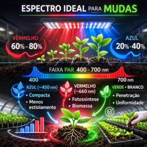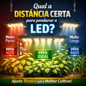 Qual a distância certa para pendurar a LED? Definir qual a distância certa para pendurar a LED no cultivo é uma decisão técnica que impacta diretamente a fotossíntese, o enraizamento e a produtividade final. Afinal, a altura da luminária determina o PPFD recebido pela planta, a uniformidade do dossel e