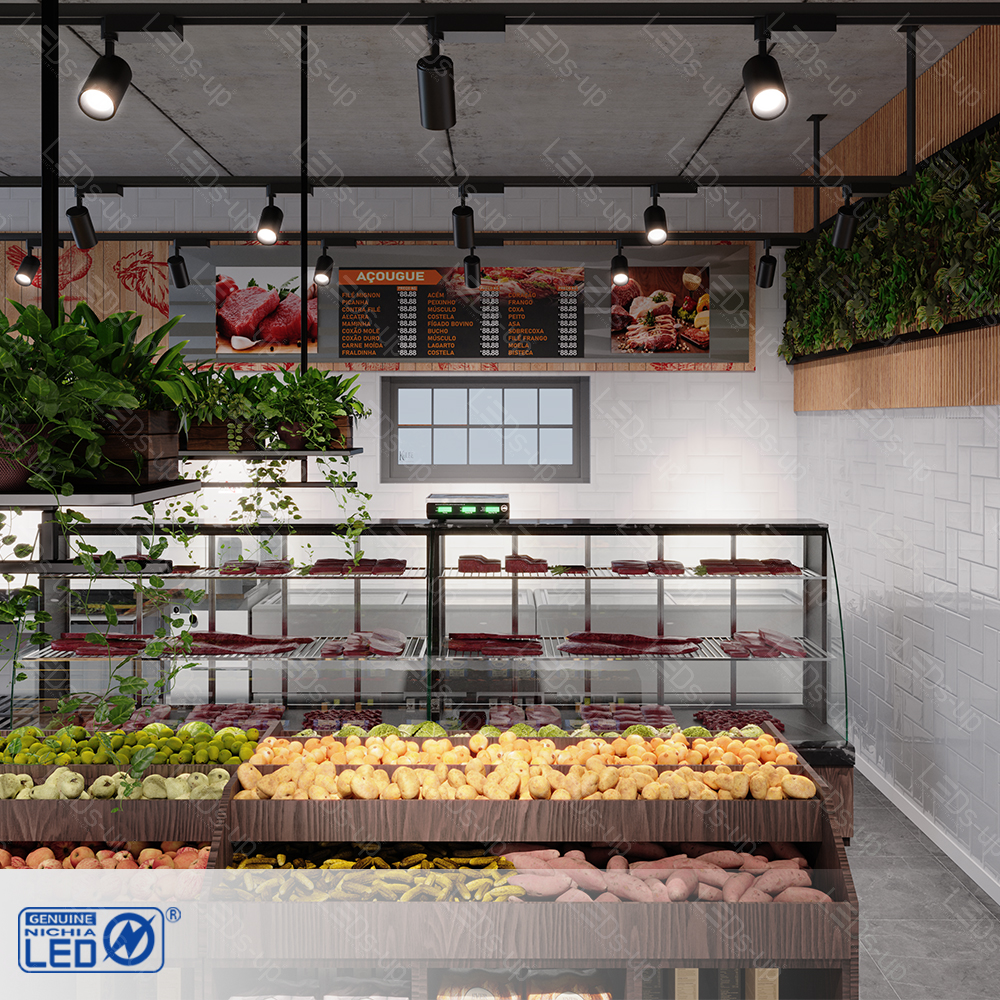 Luminária modelo Ace-COB | Hortaliças, corpo em alumínio com dissipador, acabamento em pintura eletrostática micro texturizada para instalação em trilho eletrificado.